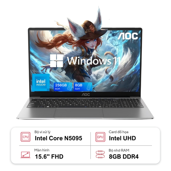 Laptop AOC N156P là lựa chọn tuyệt vời dành cho học sinh, sinh viên, nhân viên văn phòng cần một chiếc laptop gọn nhẹ, hiệu năng tốt trong tầm giá hợp lý. Với vi xử lý Intel N5095, SSD 256GB và màn hình 15.6 inch, sản phẩm này đáp ứng tốt nhu cầu học tập, làm việc và giải trí hàng ngày.