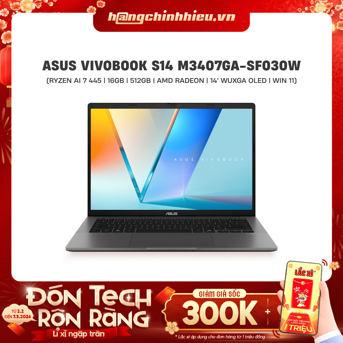 ASUS chính thức giới thiệu Vivobook S14 (M3407GA) – laptop AI dành cho giới trẻ năng động, sinh viên và nhân viên văn phòng. Với vi xử lý AMD Ryzen AI 7 445 cùng viên pin 70Whrs lên đến 23 giờ, vỏ 2 mặt kim loại Matte Gray chỉ 1.4kg, RAM nâng cấp linh hoạt và NPU 50 TOPS, Vivobook S14 mang đến trải nghiệm làm việc, học tập, sáng tạo trọn cả ngày không lo sạc pin.