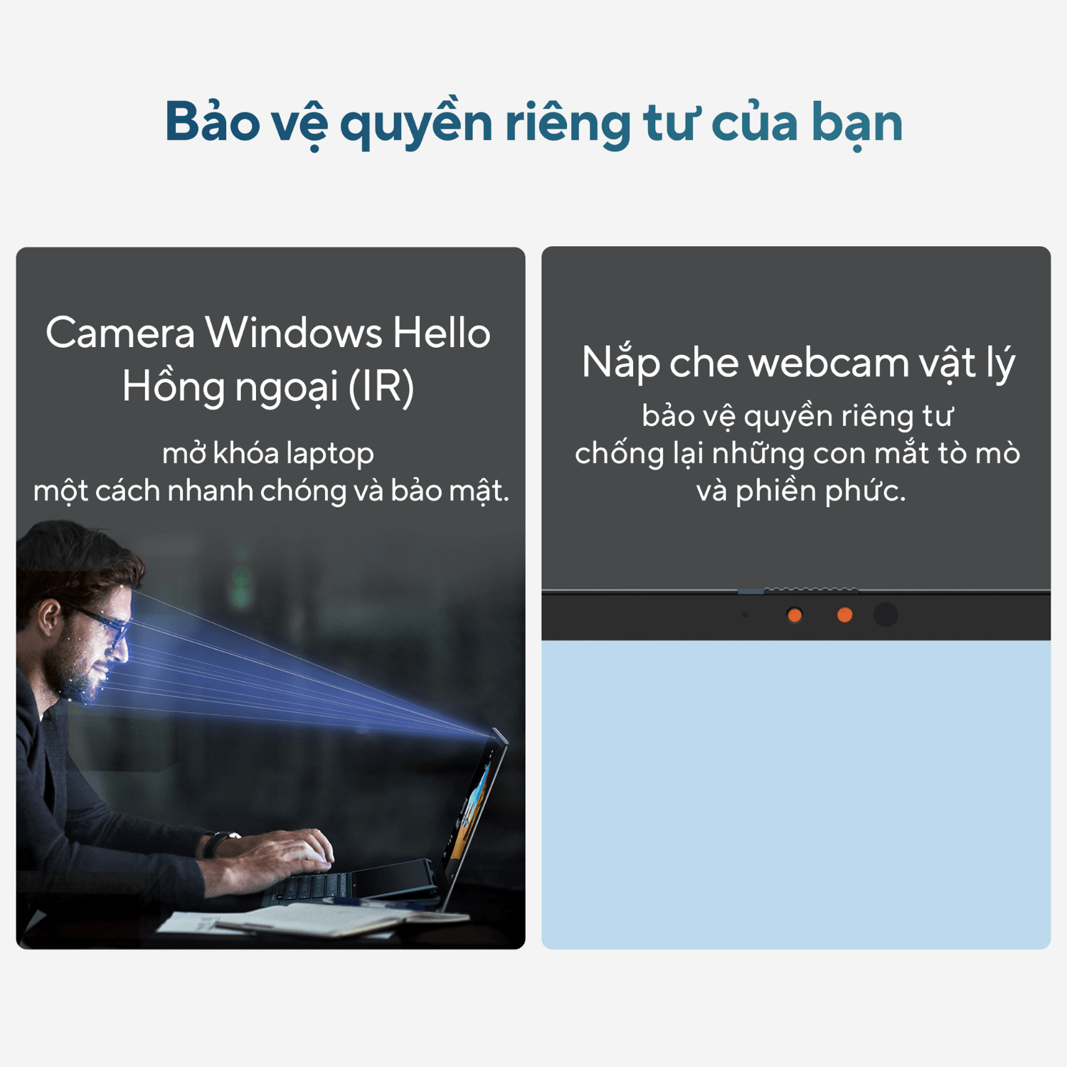 | Webcam | FHD camera with IR function to support Windows Hello ; With privacy shutter |
